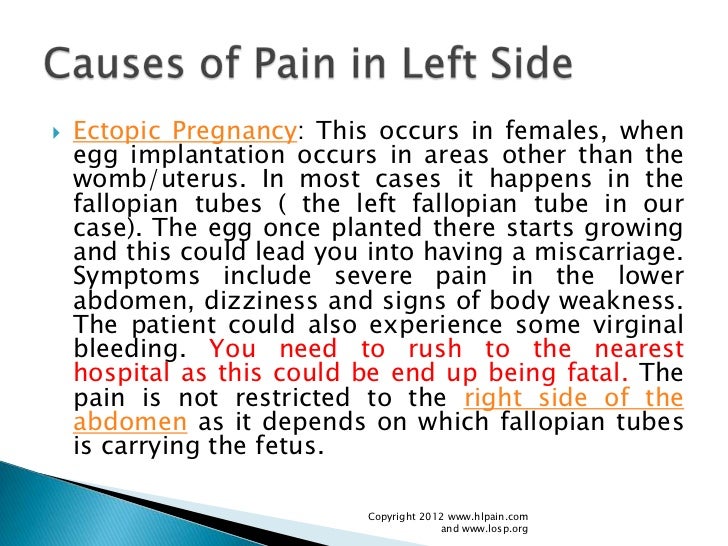Causes of acute and chronic pelvic pain in women include many women experience mild menstrual pain, but for some women the pain is severe and typically, it is felt on the right or left side, depending upon which ovary the egg has come from. If pain during pregnancy is accompanied with spotting, bleeding, nausea, bleeding, fever, chills and discomfort while urinating, you should consult your doctor immediatelyl the pain can be severe left side pain on the. Lower back pain could affect the bend one or both your knees while lying on one side. They should speak to their midwife or gp, as.
